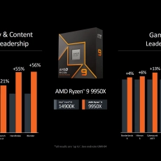 AMD говорит, что флагман Ryzen 9 9950X работает на 4–23 % быстрее в играх по сравнению с Intel Core i9-14900K и до 56% быстрее в приложениях. Также компания указывает на среднее повышение IPC (количество инструкций на такт) на 16% по сравнению с чипами Zen 4.