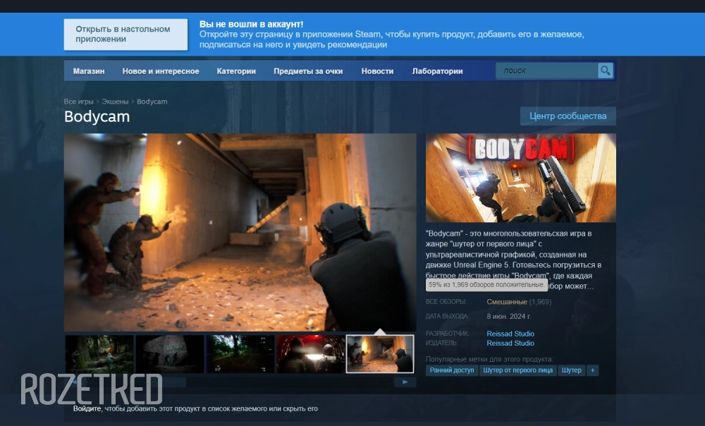 Купить новинку можно за 1080 рублей. После 14 июня игра будет стоить 1200 рублей. Bodycam продаётся в российском сегменте Steam, но русского языка в игре нет.