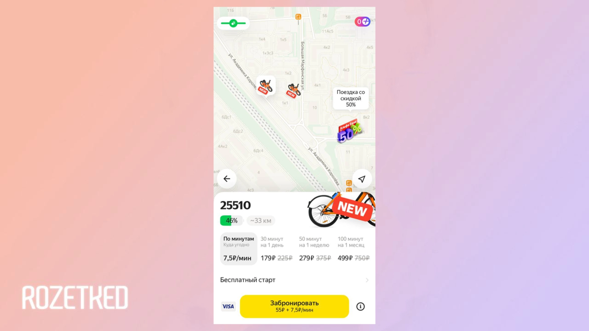 Стоимость поездки составит: от 55 рублей за бронь с тарифом 7,5 рублей в минуту. Также есть возможность купить пакеты на 30, 50 или 100 минут по сниженной цене. Помимо этого, на аренду велосипедов действуют и другие знакомые по аренде самокатов механики: «мультиаренда», подписка и кешбэк баллами «Плюса». Базовая страховка уже включена в стоимость аренды.