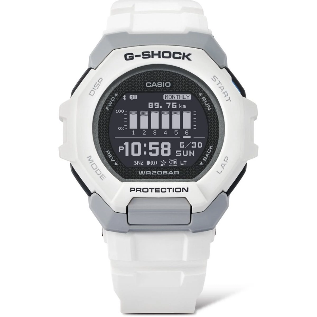 При помощи G-Shock GBD-300 можно измерить количество шагов и потраченных калорий, а также посмотреть пройденное расстояние. Если часы подключить к смартфону по Bluetooth, пользователь сможет получать уведомления о звонках и сообщениях, а также событиях из календаря. Поддерживаются несколько будильников и секундомер. Есть фирменное приложение для телефона.