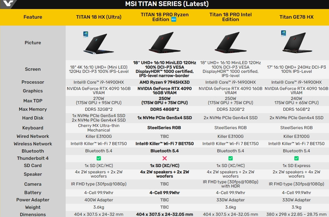 MSI Titan 18 Pro изначально был выпущен с Intel Core i9-14900HX. Новая модель называется Titan 18 Pro Ryzen Edition. Помимо монструозного чипа Ryzen машина предлагает топовую видеокарту RTX 4090.