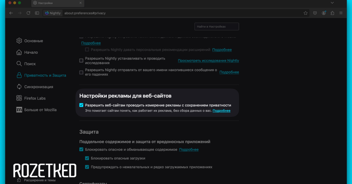 Функция включена по умолчанию, но её можно деактивировать в разделе ≡ → «Настройки» → «Приватность и защита» → «Разрешить веб-сайтам проводить измерение рекламы с сохранением приватности».