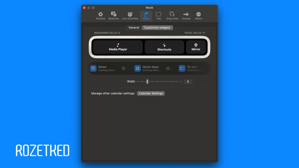 Как и Dynamic Island, NotchNook расширяется из небольшого выреза в увеличенное окно, где доступны вкладки Nook и Tray: первое — для мультимедиа и виджетов, второе — для взаимодействия с файлами (по принципу работы похоже на Dock на macOS).