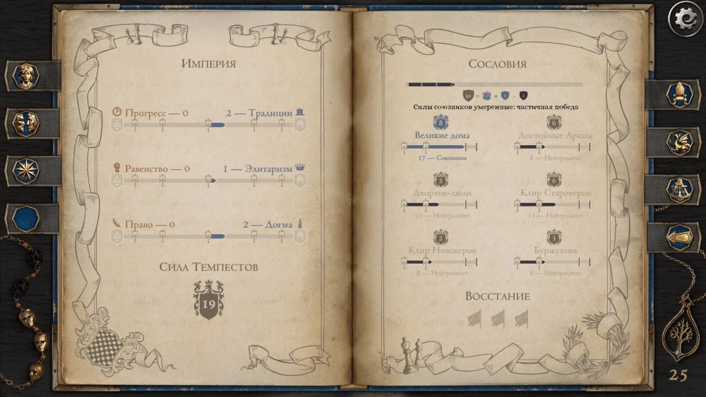 Среди новых механик, отсутствовавших в «Жизни и страданиях господина Бранте», — увеличение количества обязанностей главного героя. Джериану, наследнику трона, понадобится реагировать на политическую обстановку в мире, следить за казной и вникать в дела и отношения враждующих сословий.