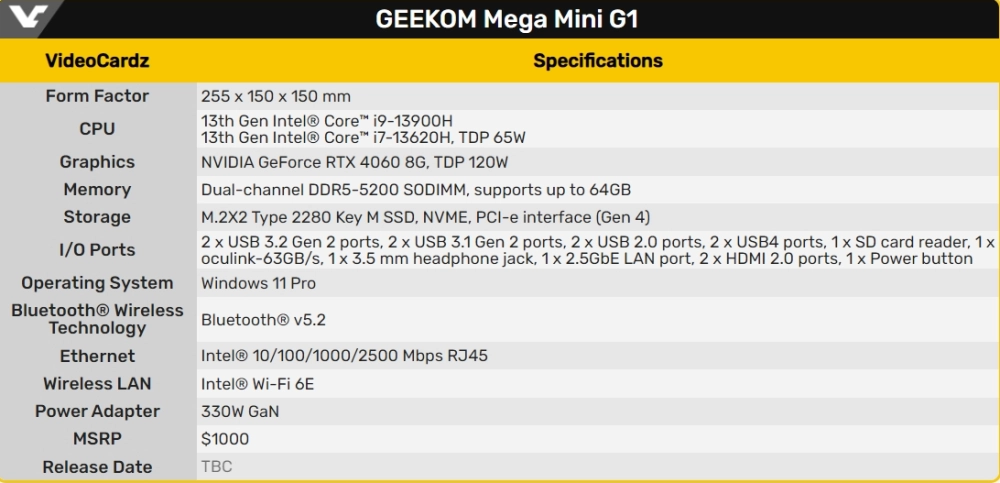 Стоимость Mega Mini G1 должна составить примерно 1000 долларов (~86 000 рублей).