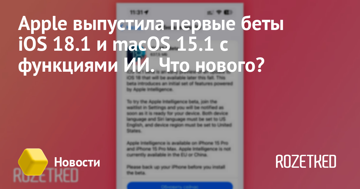 Apple выпустила первую бета-версию iOS 18.1, iPadOS 18.1 и macOS 15.1 с ИИ-функциями Apple Intelligence. Ранее о готовящемся релизе сообщила Bloomberg.