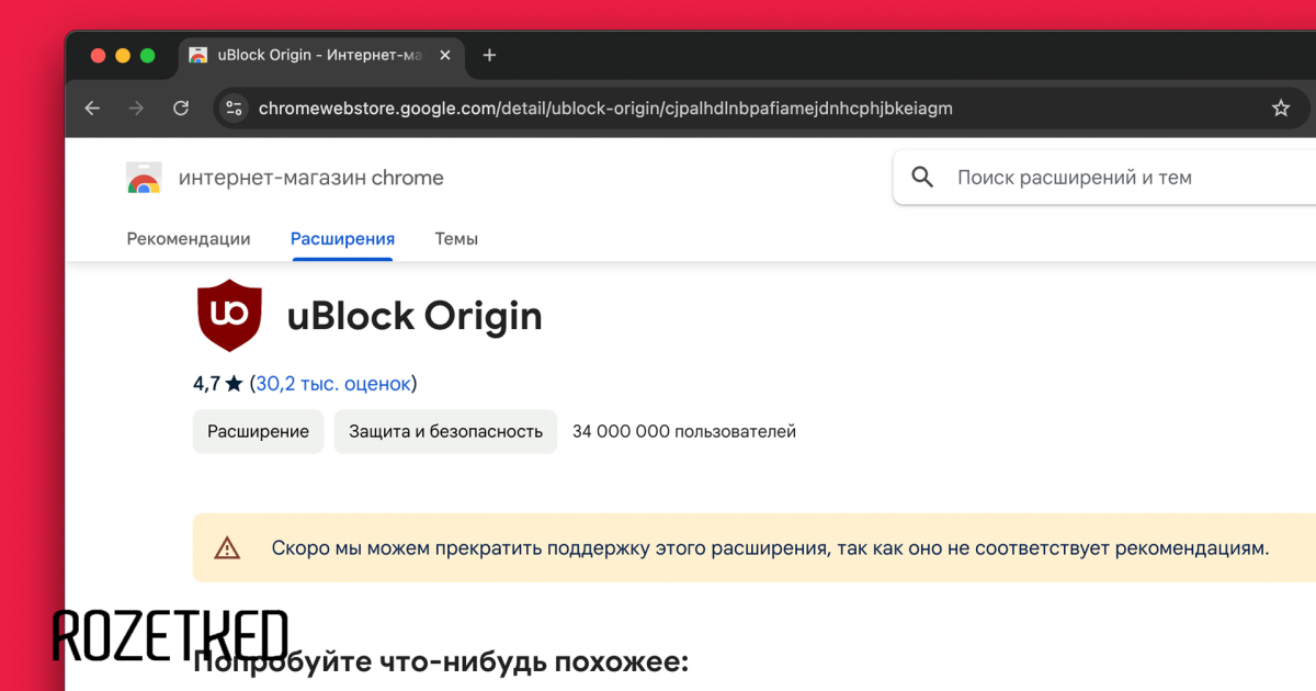 Помимо uBlock Origin прекратится поддержка и других расширений, работающих на Manifest v2. Для них в Google также предлагают найти более современную альтернативу.