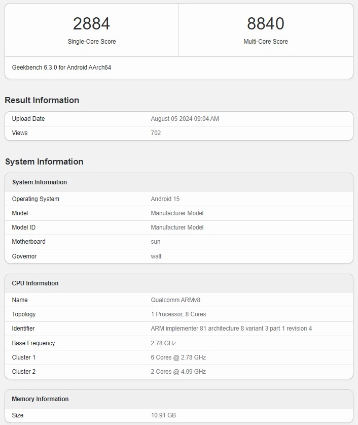 Флагманскую платформу Qualcomm Snapdragon 8 Gen 4 протестировали в Geekbench — SoC набрал 2884 и 8840 баллов в однопоточном и многопоточном тестах соответственно.