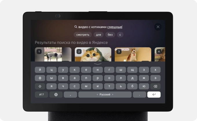 Улучшенный поиск по видео. Теперь запрос на поиск видео можно задать как голосом, так и посредством ввода текста на клавиатуре на сенсорном экране. Результаты поиска будут включать все доступные видеоплатформы — запрос также можно уточнить, например, сказав «Алисе», на каком именно видеохостинге искать контент.