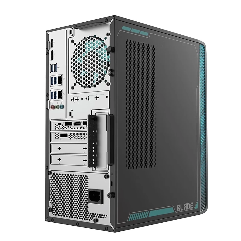 Внутри стоят такие комплектующие: 14-ядерный процессор Intel Core i7-13650HX, графический ускоритель RTX 4060 Ti, 32 ГБ оперативной памяти DDR5, твердотельный накопитель PCIe 4.0 ёмкостью 1 ТБ и блок питания мощностью 650 Вт. На задней часть ПК есть набор портов. Беспроводная связь тоже в наличии — Wi-Fi 6E.