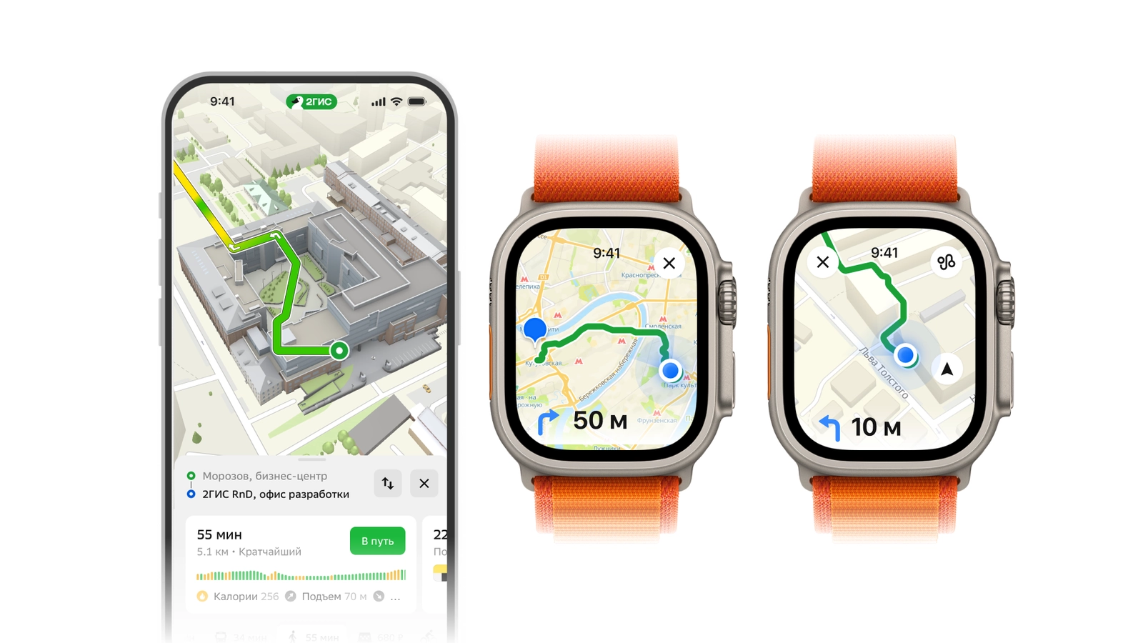 «Раньше „2ГИС“ на Apple Watch показывал местоположение пользователя на карте, но маршрут был без подсказок и ведения по карте. Теперь мы первыми среди картографических севисов превратили приложение на часах в полноценного помощника для пеших прогулок — больше не нужно держать телефон в руках, чтобы свериться, где нужно повернуть: часы подскажут»— Виктор Заикин, руководитель группы разработки новых интерфейсов «2ГИС»