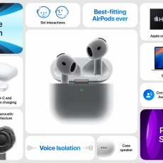 Apple называет устройство «самыми удобными AirPods». Внутри стоит чип H2, а за звук отвечает обновлённая акустическая архитектура. Активное шумоподавление и режим прозрачности на месте. Также поддерживается функция, которая снижает громкость музыки, когда пользователь начинает говорить с кем-то. Ещё есть персонализированный пространственный звук с динамическим отслеживанием головы и возможность взаимодействовать с Siri.