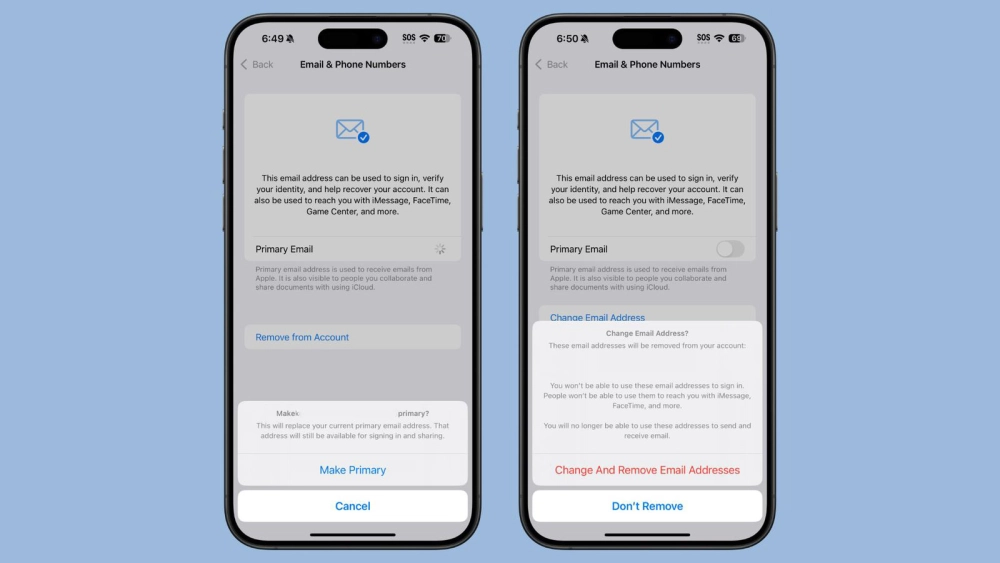 Пользователи обнаружили, что в beta-версии iOS 18.1 появилась возможность установки «Основного» адреса электронной почты, а также возможность изменить адрес уже имеющейся почты iCloud.