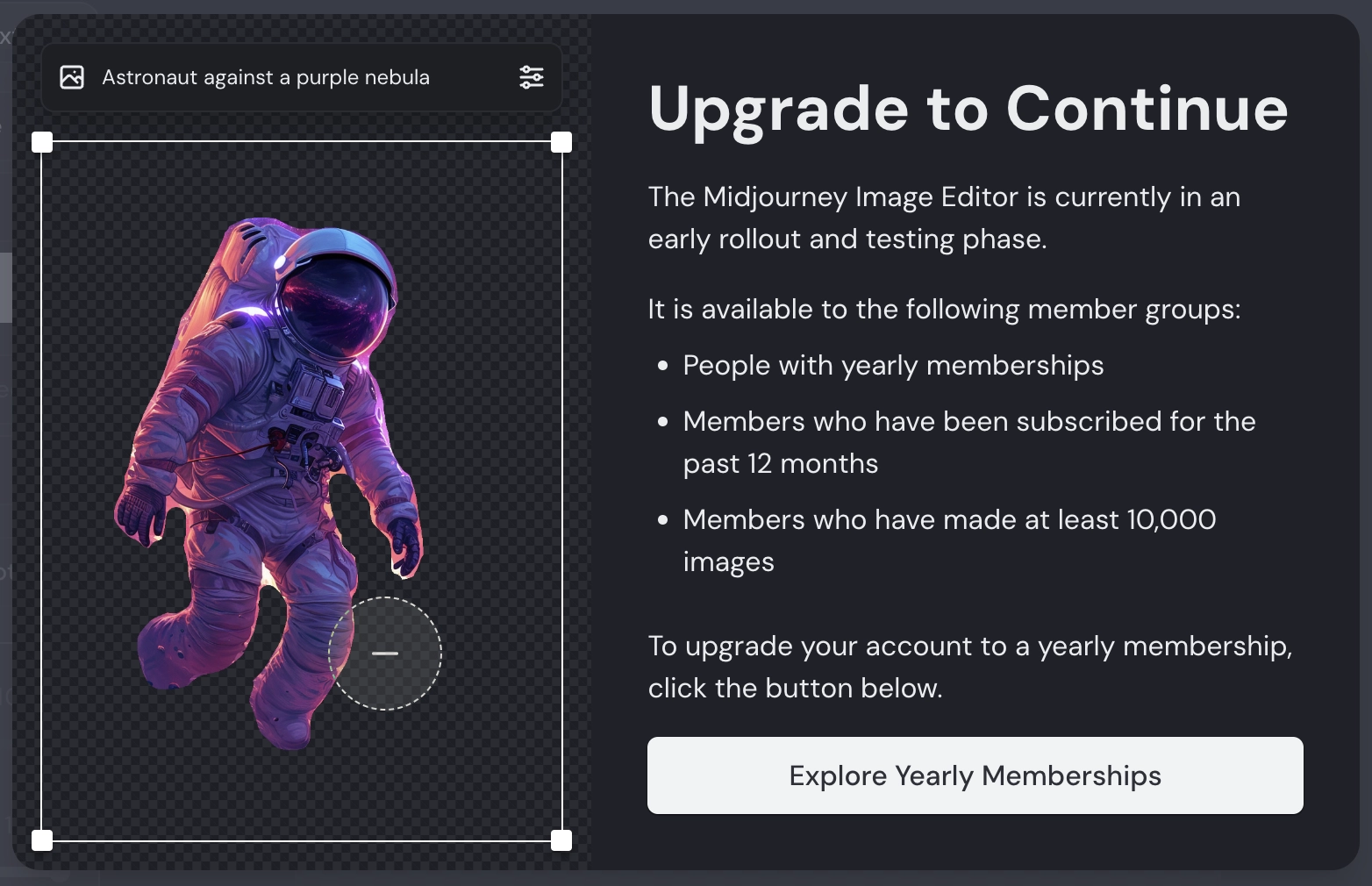 Midjourney начала разворачивать Image Editor — ИИ-редактор изображений, который позволяет существенно менять содержание изображений посредством ввода текстовых запросов и более стандартных инструментов, вроде «Ластика».