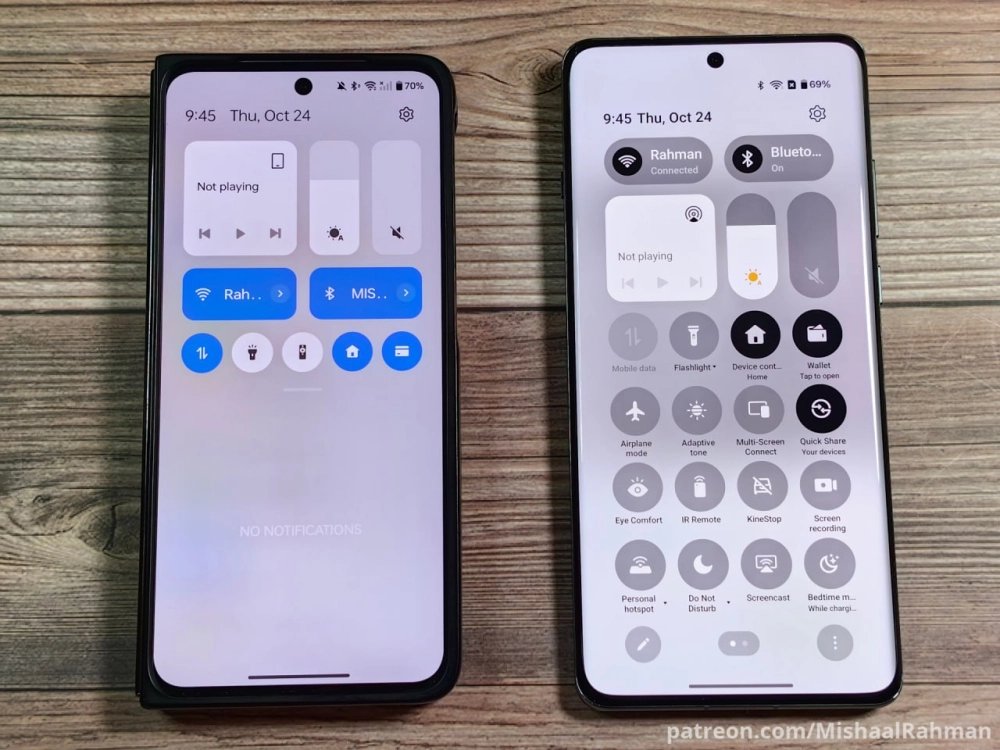 - Опциональное разделение шторки уведомлений и быстрых настроек