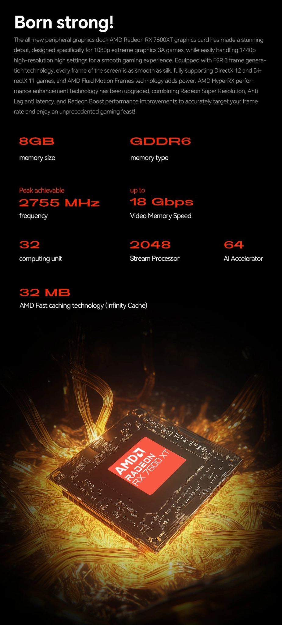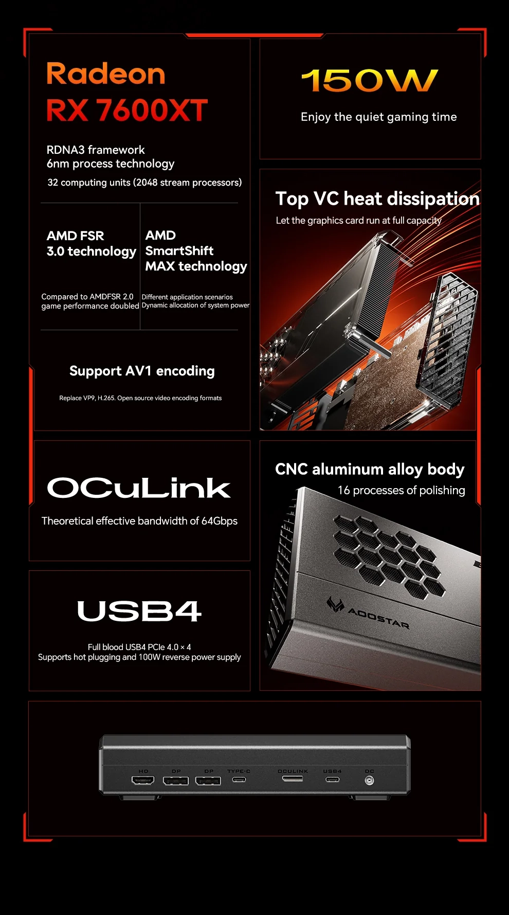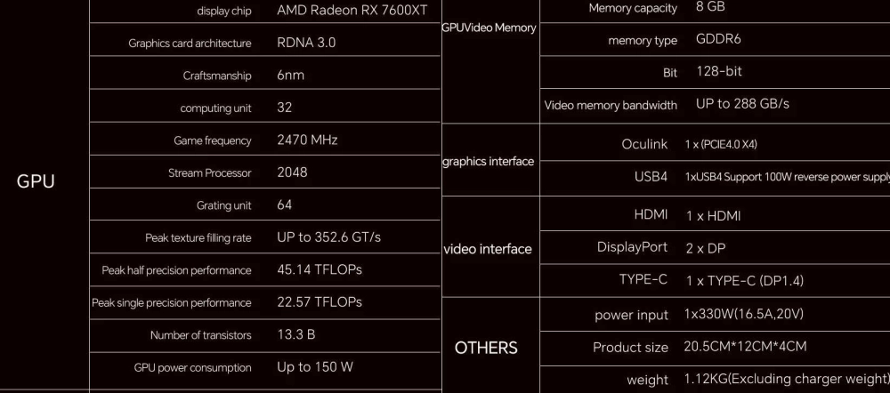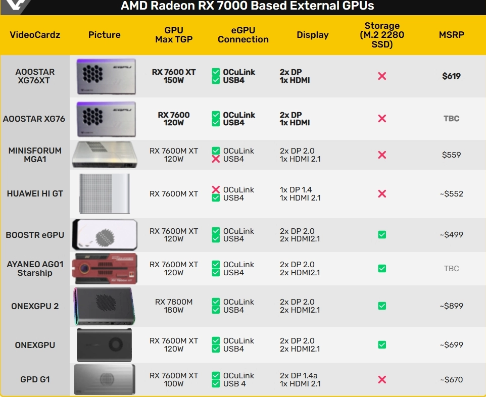 Компания Aoostar выпустила внешнюю видеокарту XG76XT, которая использует графический процессор Radeon RX 7600M XT.