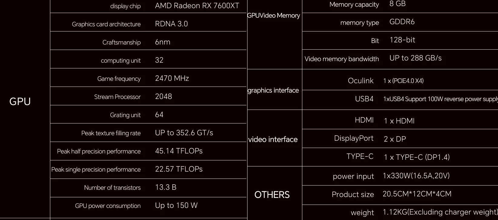 Продукт не уникальный. Такие видеокарты есть в ассортименте других компаний, например, Minisforum и Ayaneo. Но у XG76XT имеется одна особенность, которая выделяет её на фоне конкурентов — мощность 150 Вт. Это на 30 Вт выше, чем у всех остальных внешних RX 7600M XT.