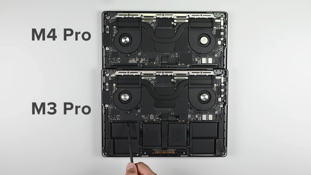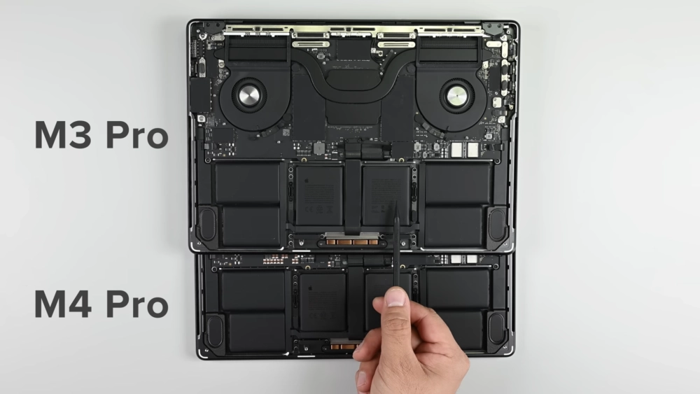 Единственное отличие от MacBook Pro (M3) — переработанная материнская плата с увеличившимся радиатором и перераспределёнными компонентами. За исключением этих «тонких отличий», всё остальное осталось прежним.