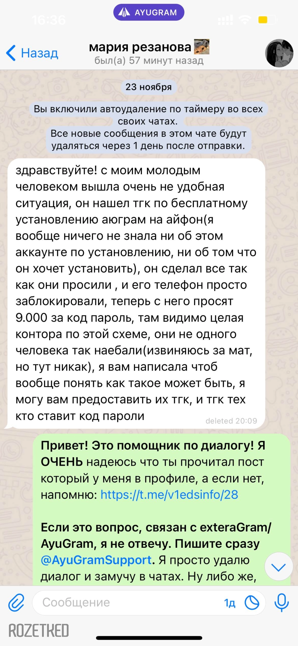 «В чём суть данного мошенничества? Скамеры говорят, вот типо зайди на аккаунт Apple через настройки, и потом зайди в App Store, а сами в этот момент меняют пароль на аккаунте, вследствие чего выход из аккаунта делается невозможным, и блокируют телефон, с сообщением что-то вроде: „Чтобы разблокировать телефон, и чтобы мы его не сбросили, переводи [n-ое тысяч] рублей”», — читатель Rozetked.
