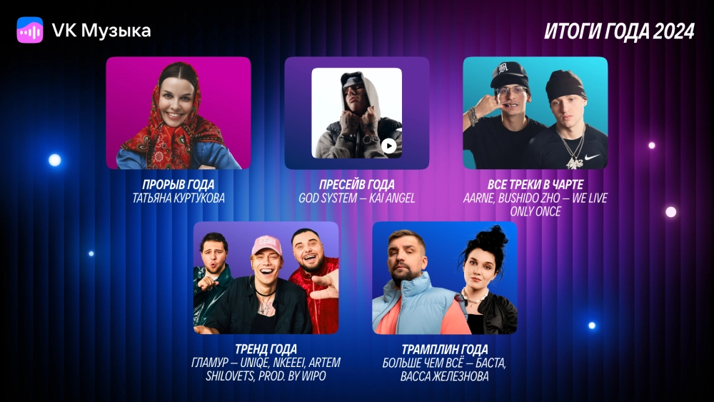 «Несмотря на то, что часть призёров публике уже знакома, 2024 год прошёл под знаком творческих успехов не только для них. Он поднял популярность таких артистов, как Женя Трофимов, Минаева, BLIZKEY, MIRAVI, bearwolf, ALMARY, Merab Amzoevi, и ряда других имён, которые в уходящем году впервые попали в чарт „VK Музыки“. А, например, MONA, BUSHIDO ZHO и Молодой Платон утвердились в качестве стабильных хитмейкеров»— Сергей Мудрик, главный редактор «VK Музыки»