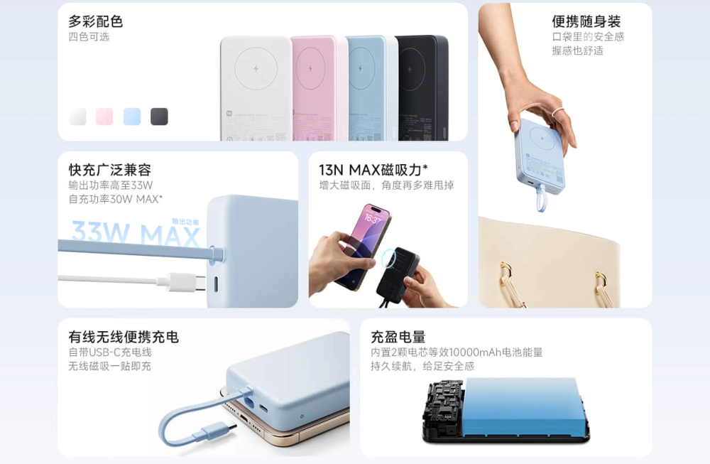 Xiaomi расширяет линейку компактных повербанков новой моделью с поддержкой MagSafe и встроенным кабелем для быстрой проводной зарядки.