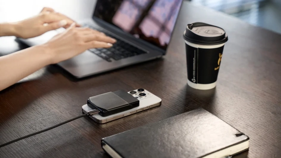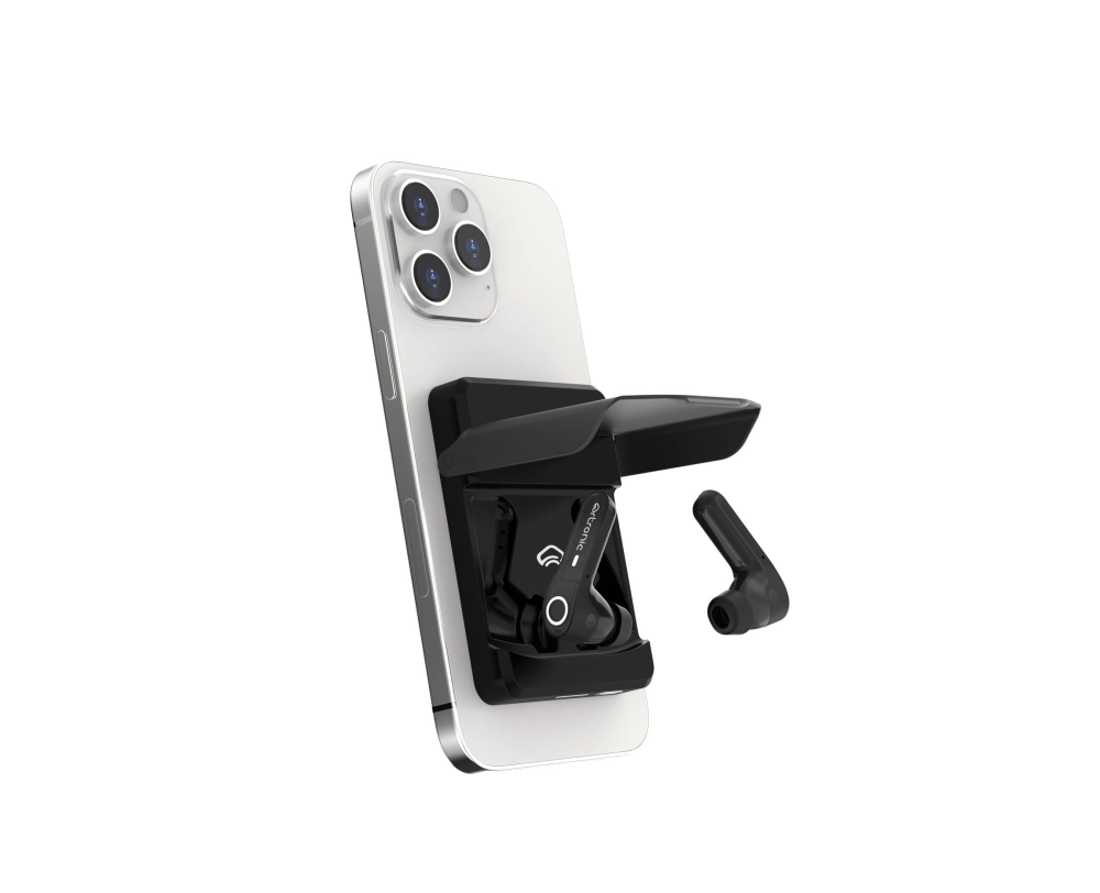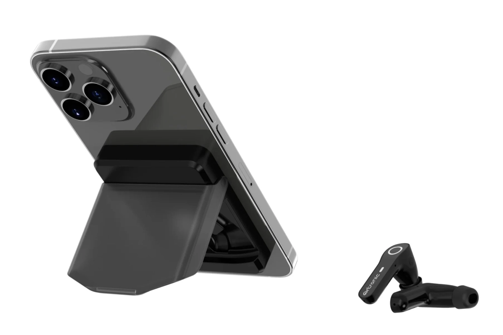Artronic Design представила на CES 2025 наушники под названием Komutr. У них есть одна фишка — зарядный MagSafe-кейс, который можно закрепить на задней части смартфона и использовать как подставку.