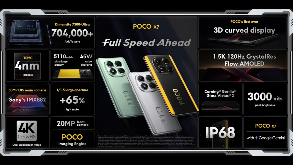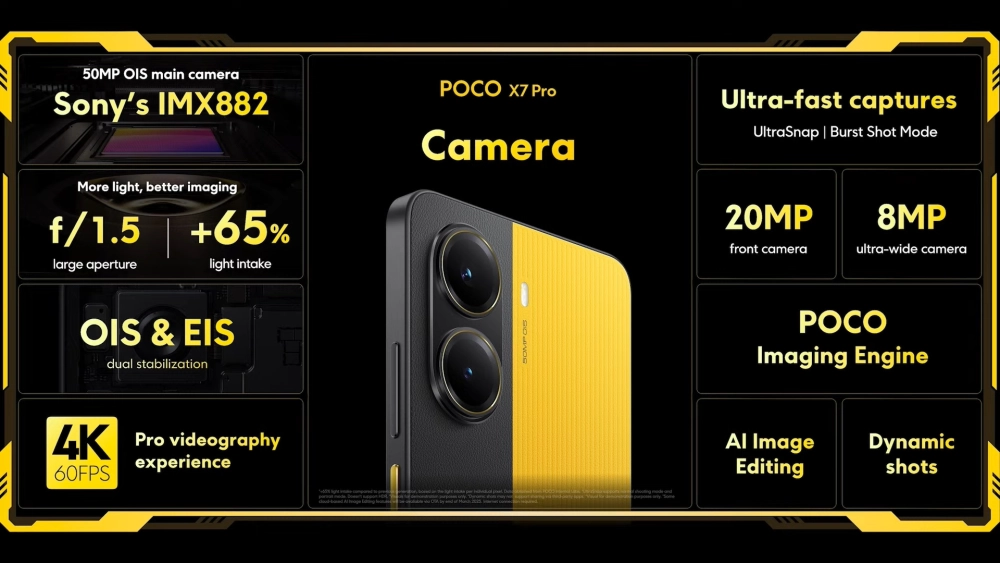 У Poco X7 и X7 Pro в основной камере установлен сенсор Sony IMX882 с OIS/EIS. Поддерживается запись видео в 4K/60 кадров.
