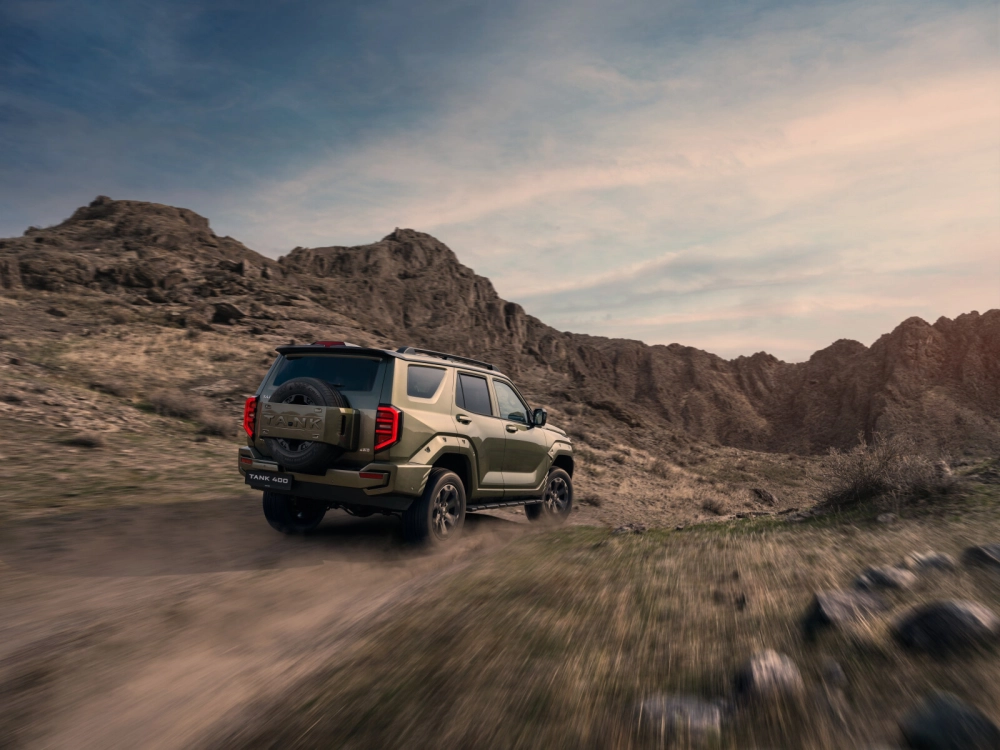 «Новый Tank 400 в двух комплектациях с бензиновым двигателем готовится к дебюту в России. Рамный внедорожник с передней двухрычажной подвеской и задним неразрезным мостом сочетает передовые решения для выдающейся проходимости, уверенного движения по асфальту и высокого уровня комфорта и безопасности»