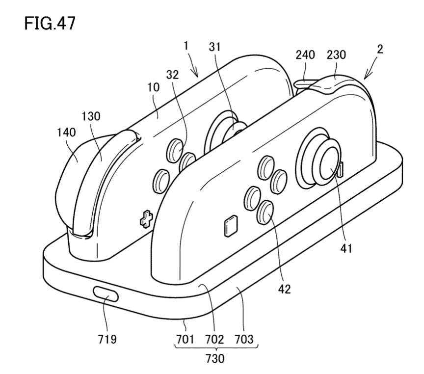 Другой патент показывает аксессуары для Joy-Con: магнитный ремешок и зарядную станцию.