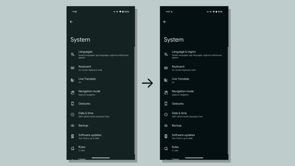 - Фон интерфейса системных настроек при активной ночной теме окрашен в более глубокий цвет.
