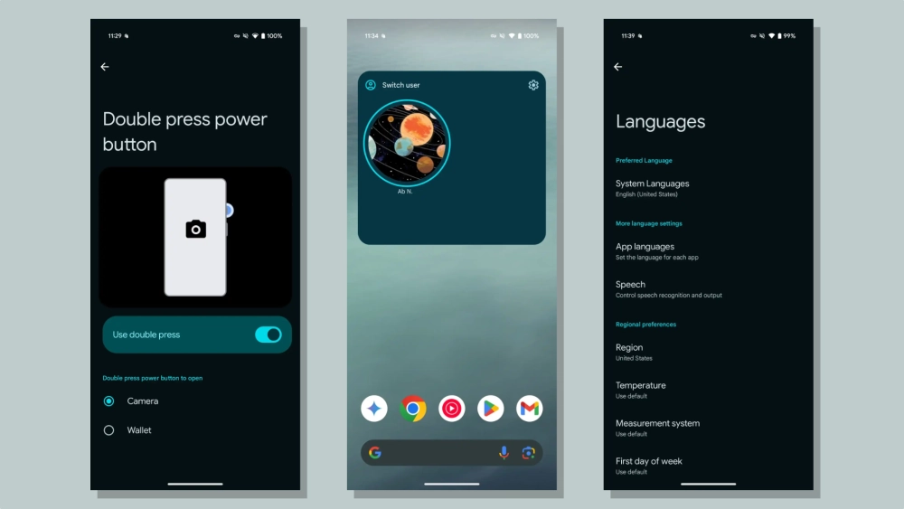 - В разделе «Настройки» → «Система» → «Жесты» появилась опция для настройки поведения при двойном нажатии на кнопку питания. Помимо камеры, на это действие можно назначить вызов приложения «Кошелёк».