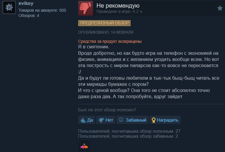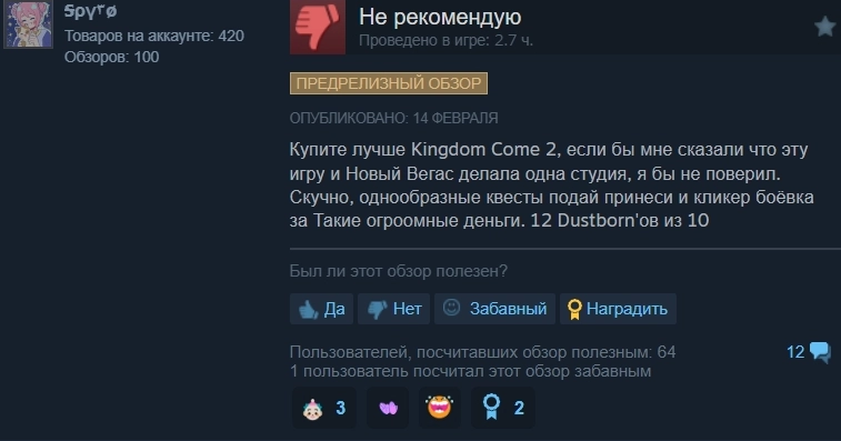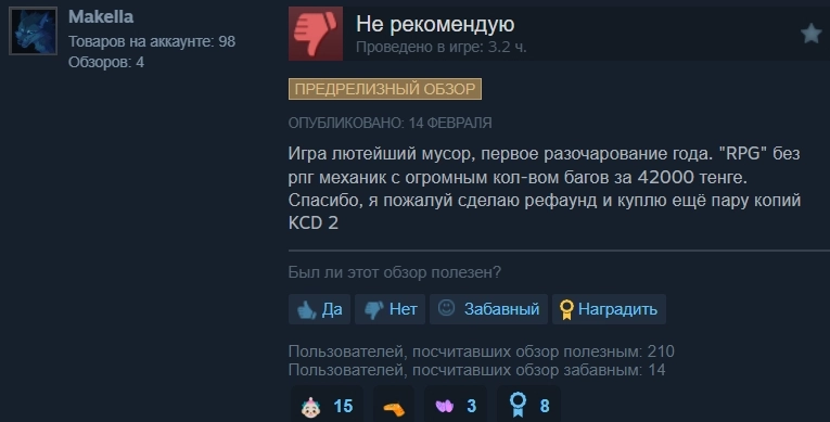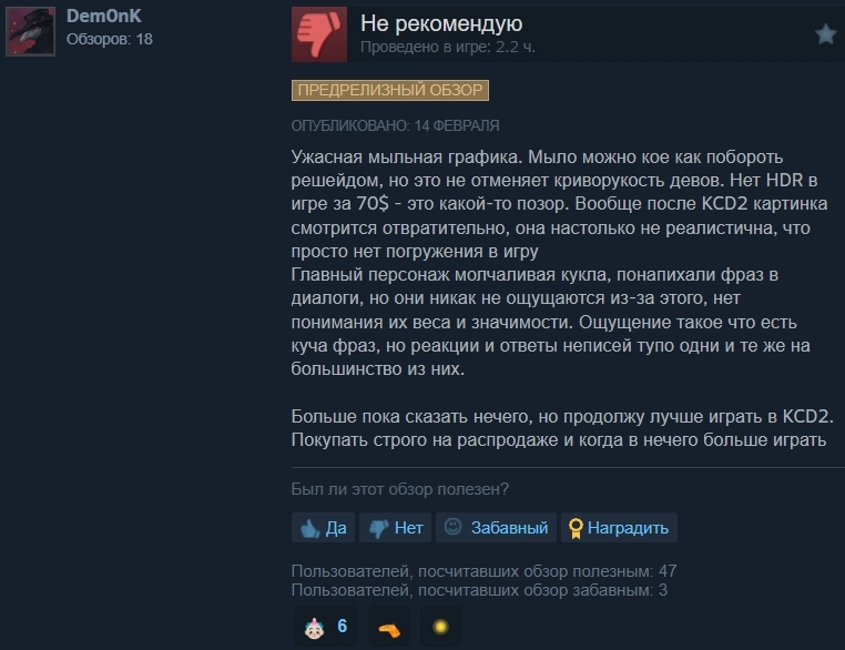 Но есть и негативные отзывы. Некоторые игроки считают, что лучше потратить деньги на Kingdom Come: Deliverance II.