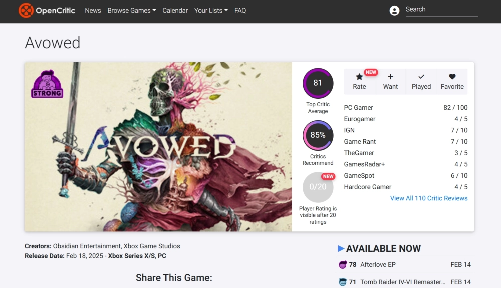Что касается прессы, на Metacritic у новой RPG 80 баллов, а на OpenCritic — 85% рекомендаций.