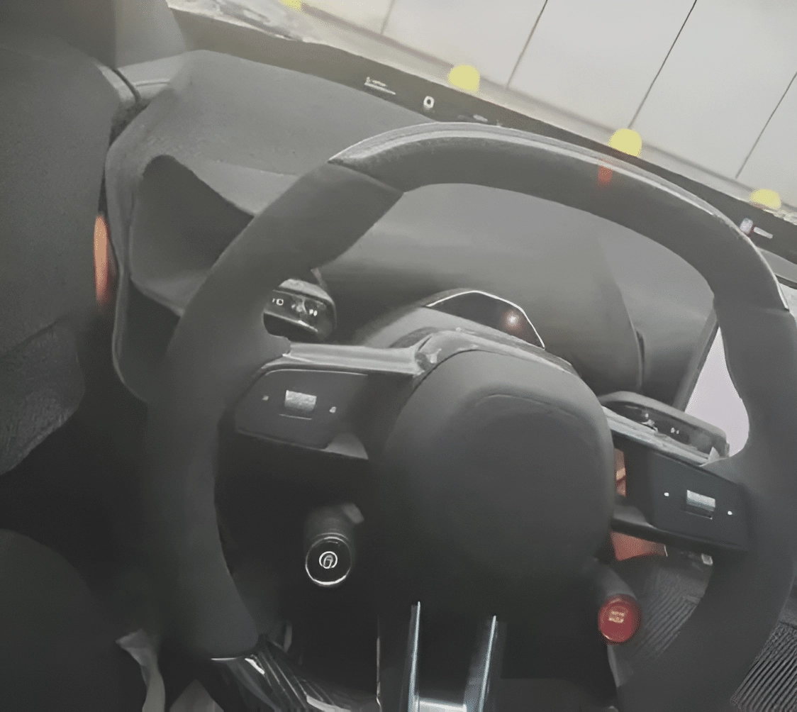 Рулевое колесо YU7 похоже на то, что используется в седане Xiaomi SU7. В отделке есть алькантара и карбоновое волокно. На руле видны физические кнопки, включая «Boost Mode» и клавишу для активации усовершенствованной системы помощи водителю (ADAS).