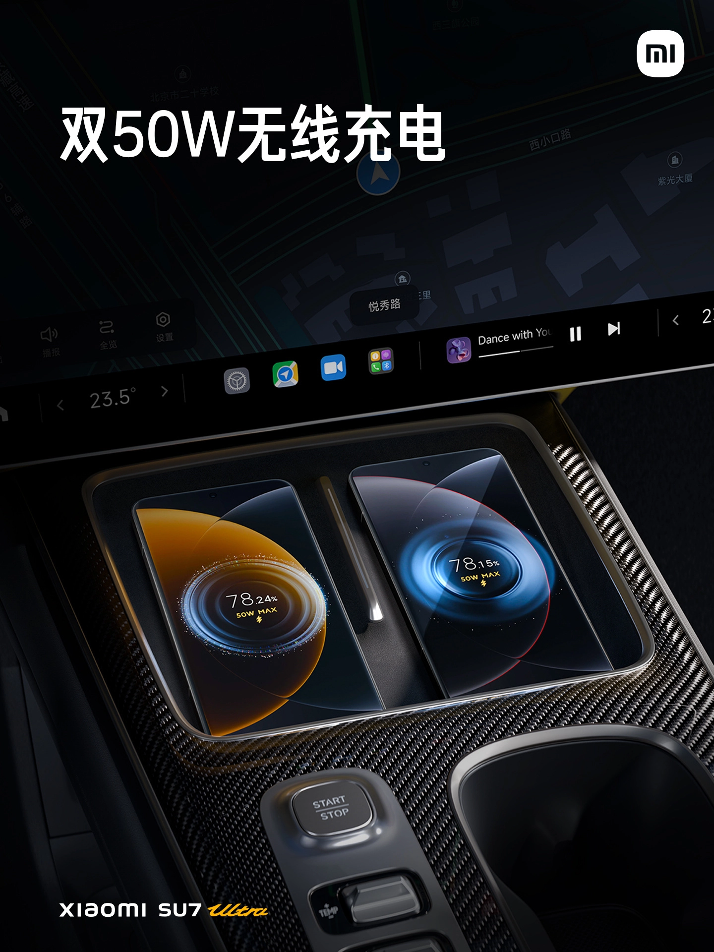 В салоне есть беспроводная зарядка на 50 Вт для двух смартфонов.