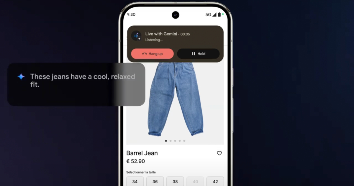 Например, в демонстрационном ролике от Google, пользователь просматривает страницу в онлайн-магазине и спрашивает у Gemini, какая одежда подойдёт к мешковатым джинсам.