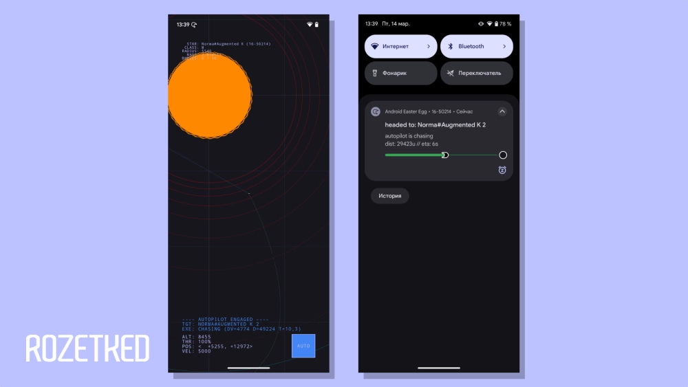 - Обновление «пасхалки»: в скрытой космической игре появилась кнопка автопилота, благодаря которой корабль сам находит планеты. В уведомлении появляется «живое» отображение статуса благодаря новой функции Live Updates.