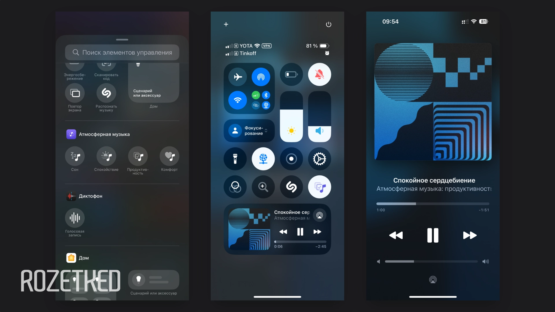 Атмосферная музыка. В «Пункт управления» теперь можно вынести ярлыки для запуска плейлистов с эмбиент-музыкой. Доступны категории «Сон», «Спокойствие», «Продуктивность» и «Комфорт», в каждой несколько плейлистов. Через виджет в Dynamic Island можно попасть в полноэкранный интерфейс для управления воспроизведением.