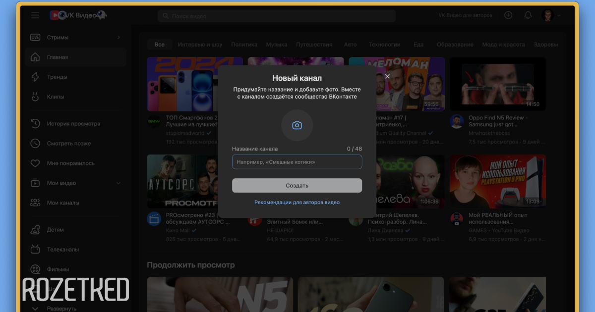 Также в «VK Видео» упростили процесс создания канала. Если у автора ещё нет собственного канала, предложение появится при попытке загрузить видео.