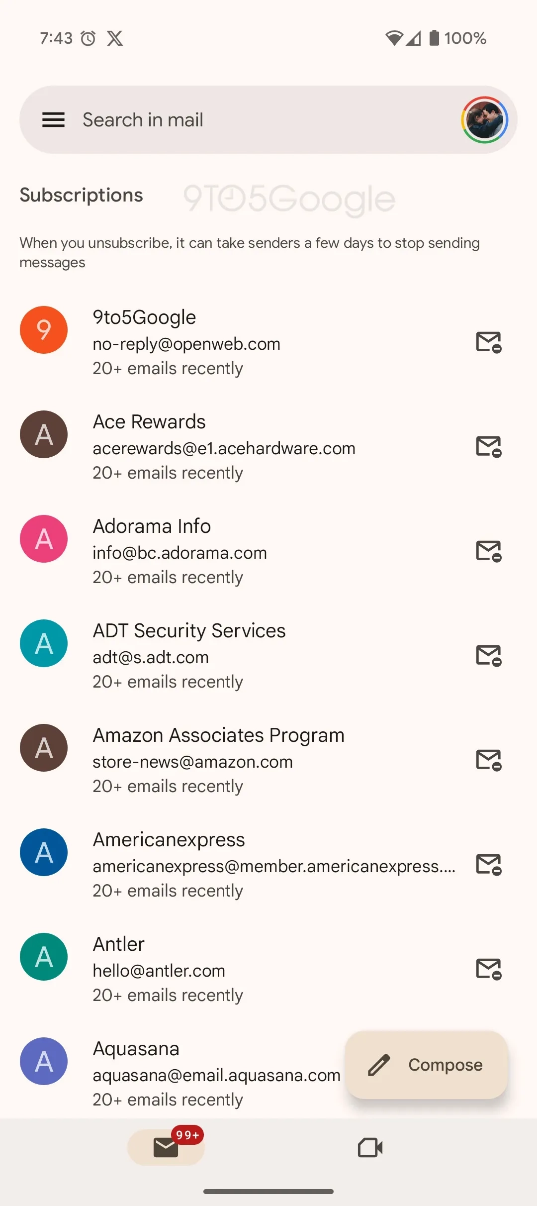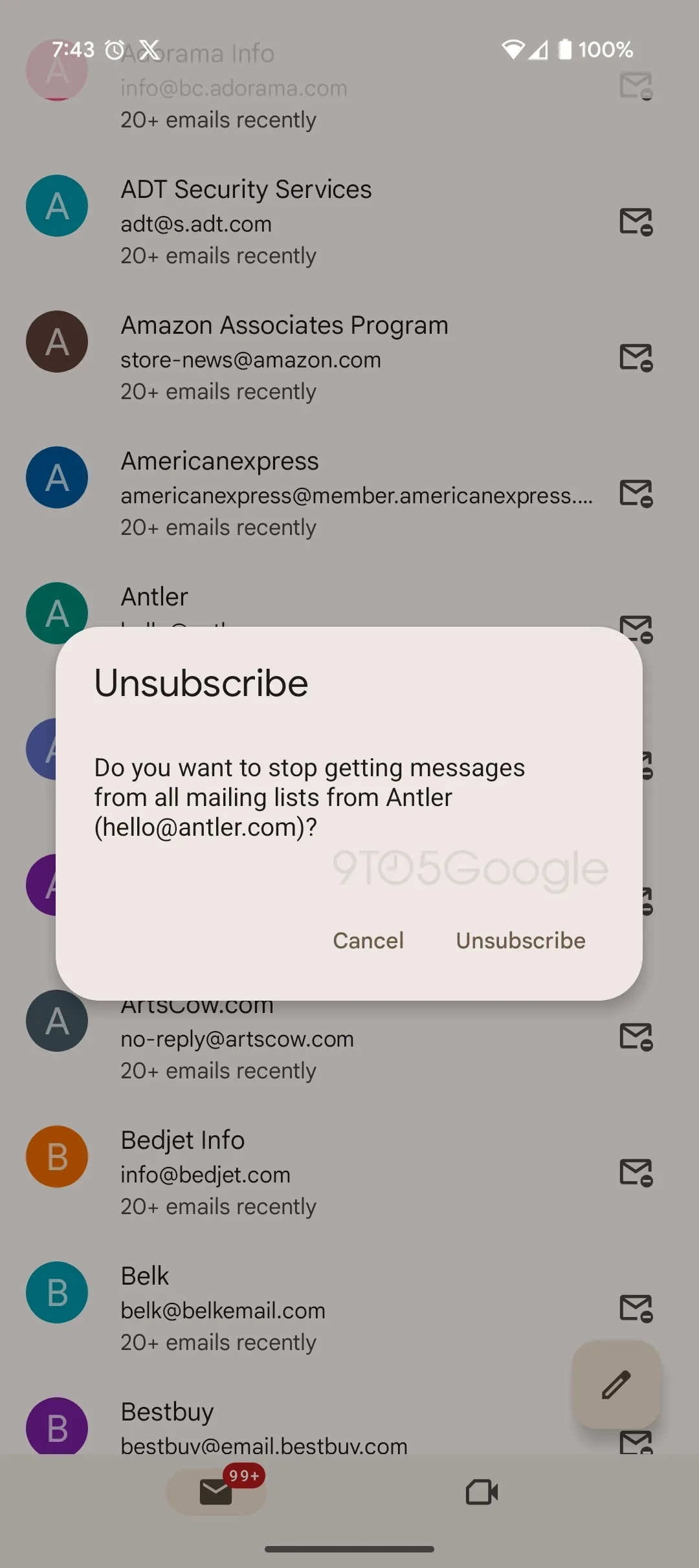 Google добавляет, что «отправителям может потребоваться несколько дней, чтобы прекратить отправлять письма» после того, как пользователь откажется от рассылки.