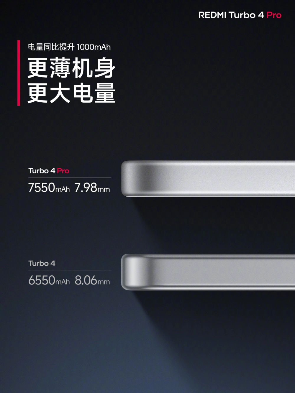 Внутри Redmi Turbo 4 Pro стоит чипсет Snapdragon 8s Gen 4. Помимо нового процессора, аппарат может похвастаться аккумулятором на 7550 мАч. Он не только поддерживает проводную зарядку на 90 Вт, но и обратную на 22,5 Вт. Смартфон можно использовать как пауэрбанк для зарядки других гаджетов.