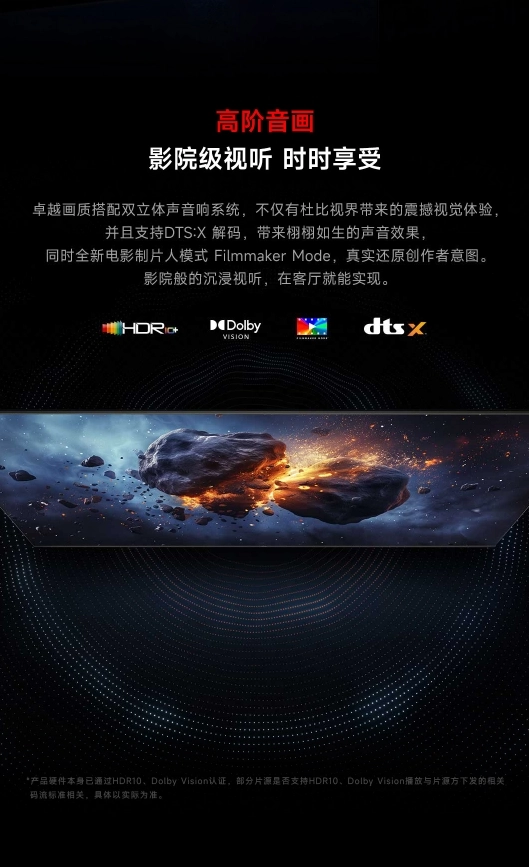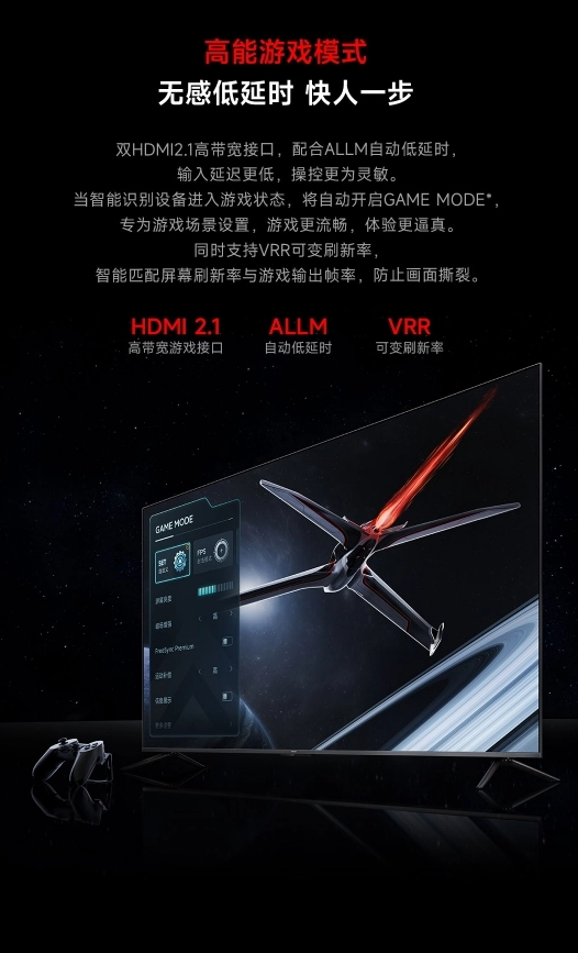 ТВ получил 4K-экран с частотой обновления до 144 Гц. Также есть режим, в котором матрица «разгоняется» до 288 Гц. В характеристиках заявлены технологии MEMC, VRR и ALLM, а цветовой охват гаммы DCI-P3 составляет 94%.