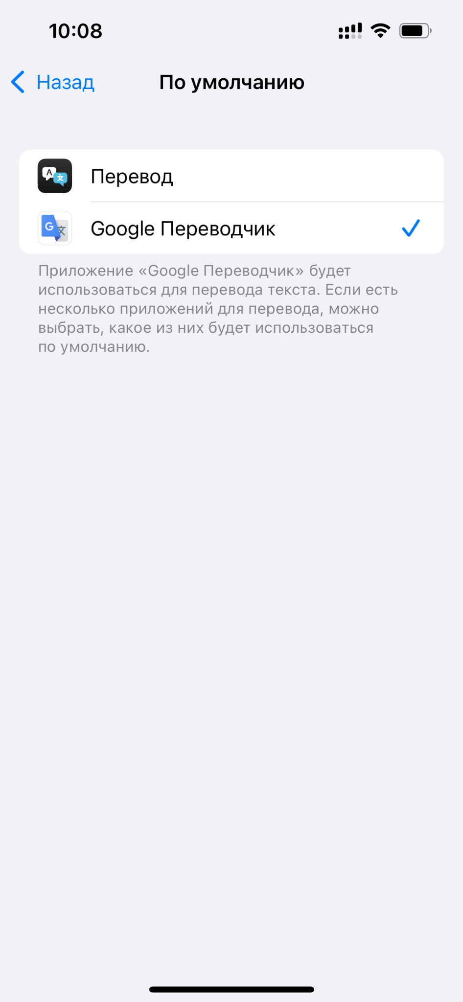 Пока возможность установки приложения по умолчанию есть только у «Google Переводчика» и «DeepL Переводчика».