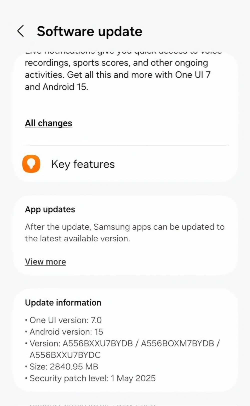 SamMobile сообщает, что обновление начали выпускать для устройств серии Galaxy A. В частности, One UI 7 стала прилетать на Galaxy A55 в Европе, а в Южной Корее обновление получают владельцы Galaxy A54, Galaxy A15 и A16.