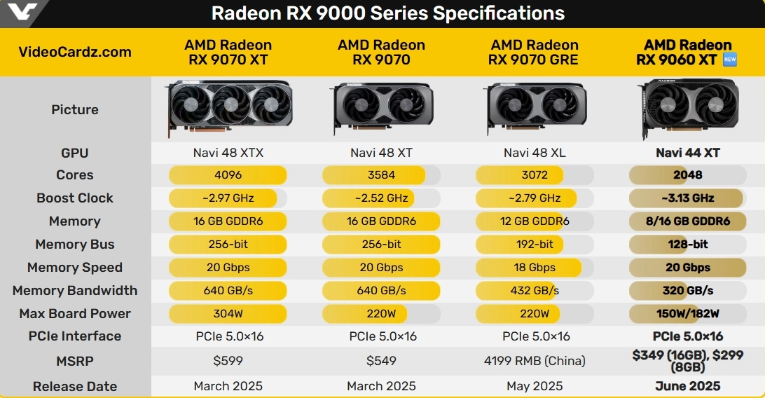 Характеристики Radeon RX 9060 XT: