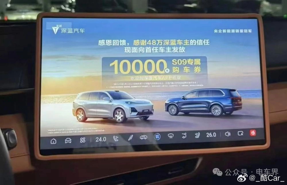 Владельцы автомобилей Deepal (дочерний бренд Changan) столкнулись с неприятным сюрпризом — после включения машины встроенный дисплей начал демонстрировать рекламный кадр с предложением скидки на Deepal S9 в размере 10 тысяч юаней (~85 200 рублей).