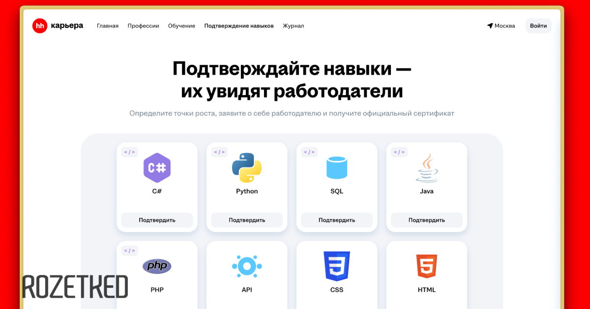 Оператором системы выступает карьерная платформа hh.ru, на её сайте доступны тесты по 21-й компетенции: