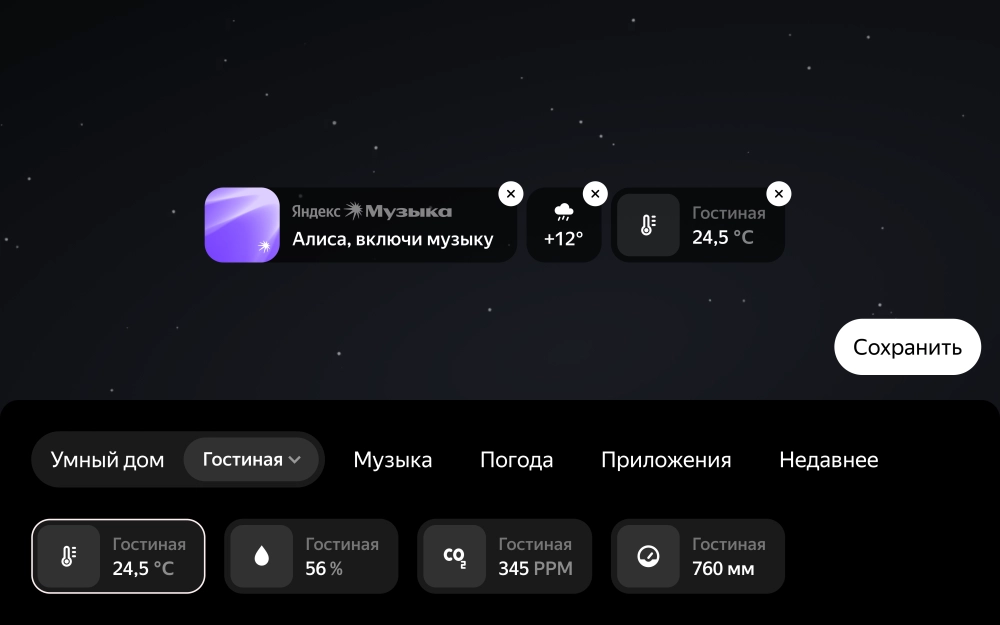 Ещё обновилось управление умным домом — теперь на «Станцию» можно выводить виджеты с камер наблюдения и датчиков температуры и воздуха для быстрого управления климатом в доме.