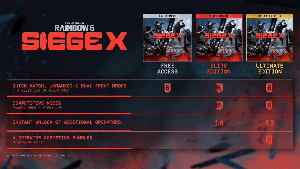 Несмотря на то, что шутер доступен бесплатно, для доступа к рейтинговому режиму придётся заплатить. В F2P-версию входит доступ к быстрым и безрейтинговым играм, а также режиму Dual Front с избранными оперативниками.
