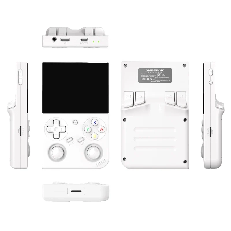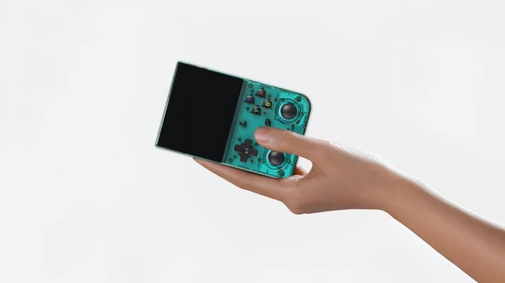Устройство поставляется в привычном для консолей Anbernic форм-факторе. Есть полный набор кнопок, триггеры и два стика. На выбор три расцветки корпуса, включая полупрозрачную зелёную.